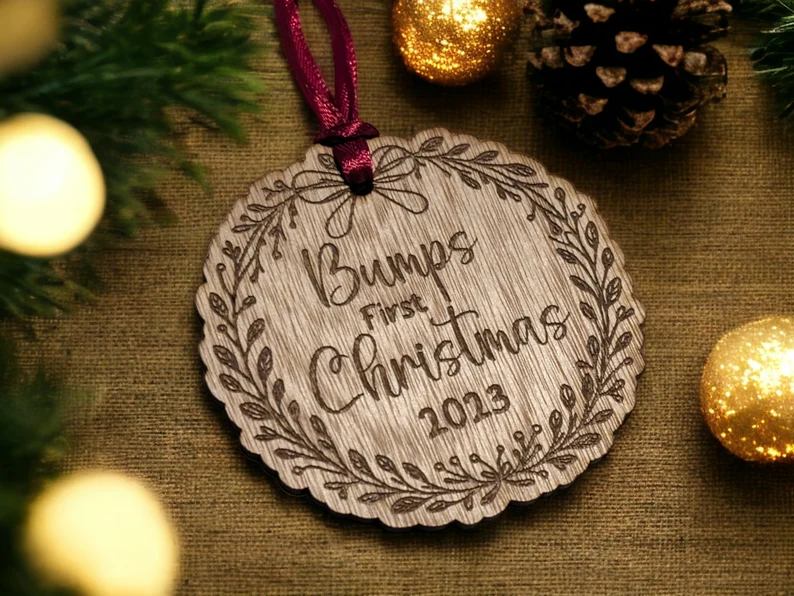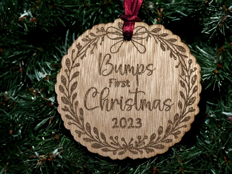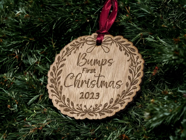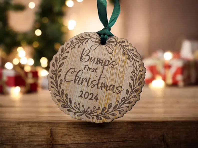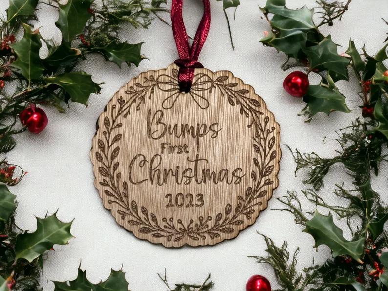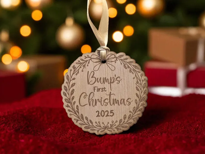 Celebrate the magic of expecting with this Bump’s First Christmas Bauble, a thoughtful keepsake for mums-to-be during the festive season. Crafted from sustainable wood veneer and engraved with a sweet, minimal design, it adds warmth and sentiment to any Christmas tree.