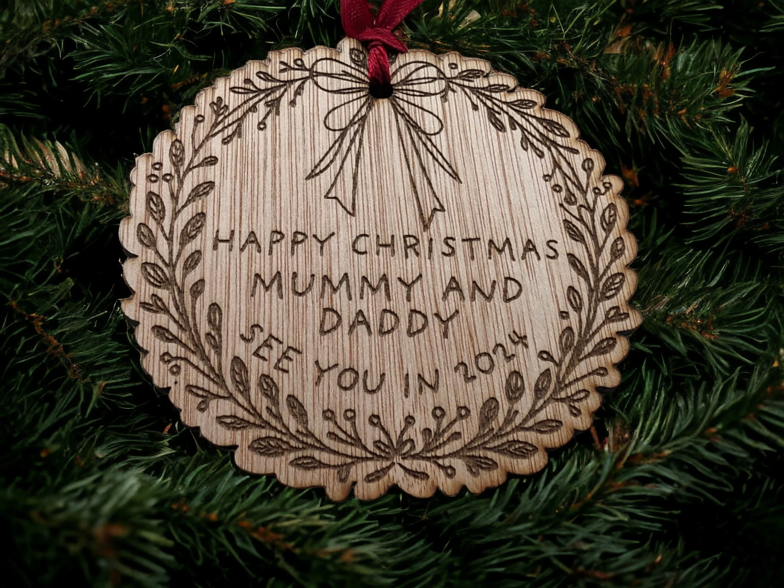 Share your joyful news in the most magical way this festive season with our Personalised Wooden Pregnancy Announcement Bauble. Crafted from natural wood veneer, this heart-warming ornament features an adorable baby feet design surrounded by a delicate hand-drawn wreath — the perfect way to tell loved ones that a new arrival is on the way.