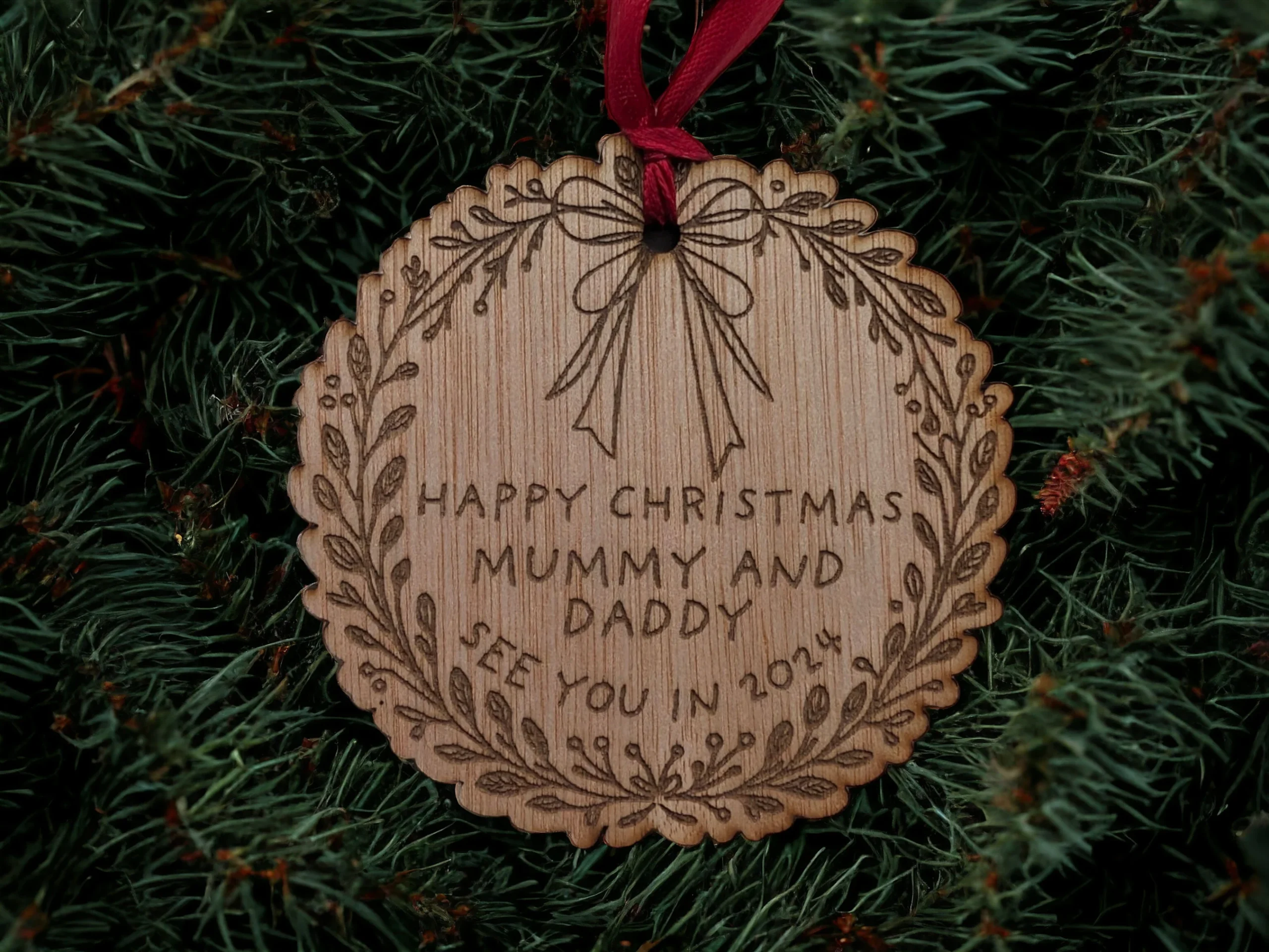 • Choice of ribbon – Choose from classic red, festive green or modern vegan-leather strap to complete your ornament.