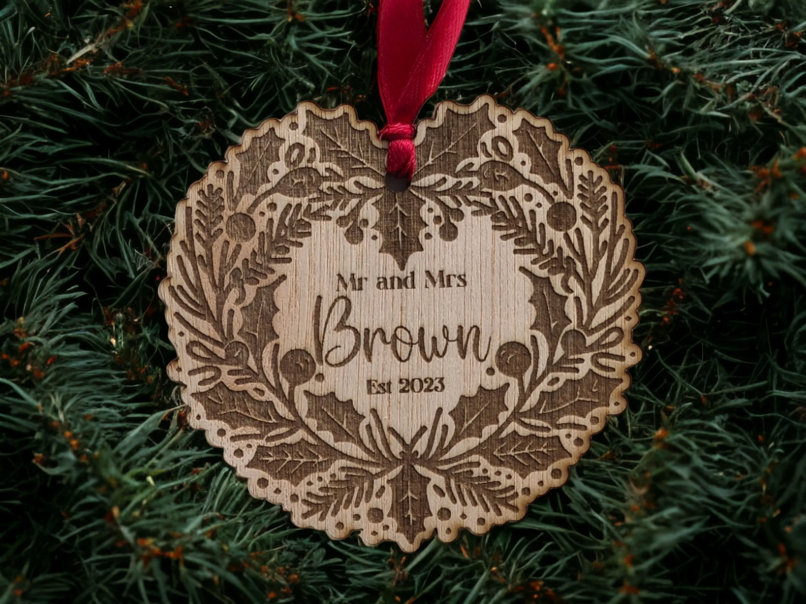 Premium wooden finish – Laser-engraved on 4 mm wood veneer for a natural, rustic charm that complements any festive décor.
