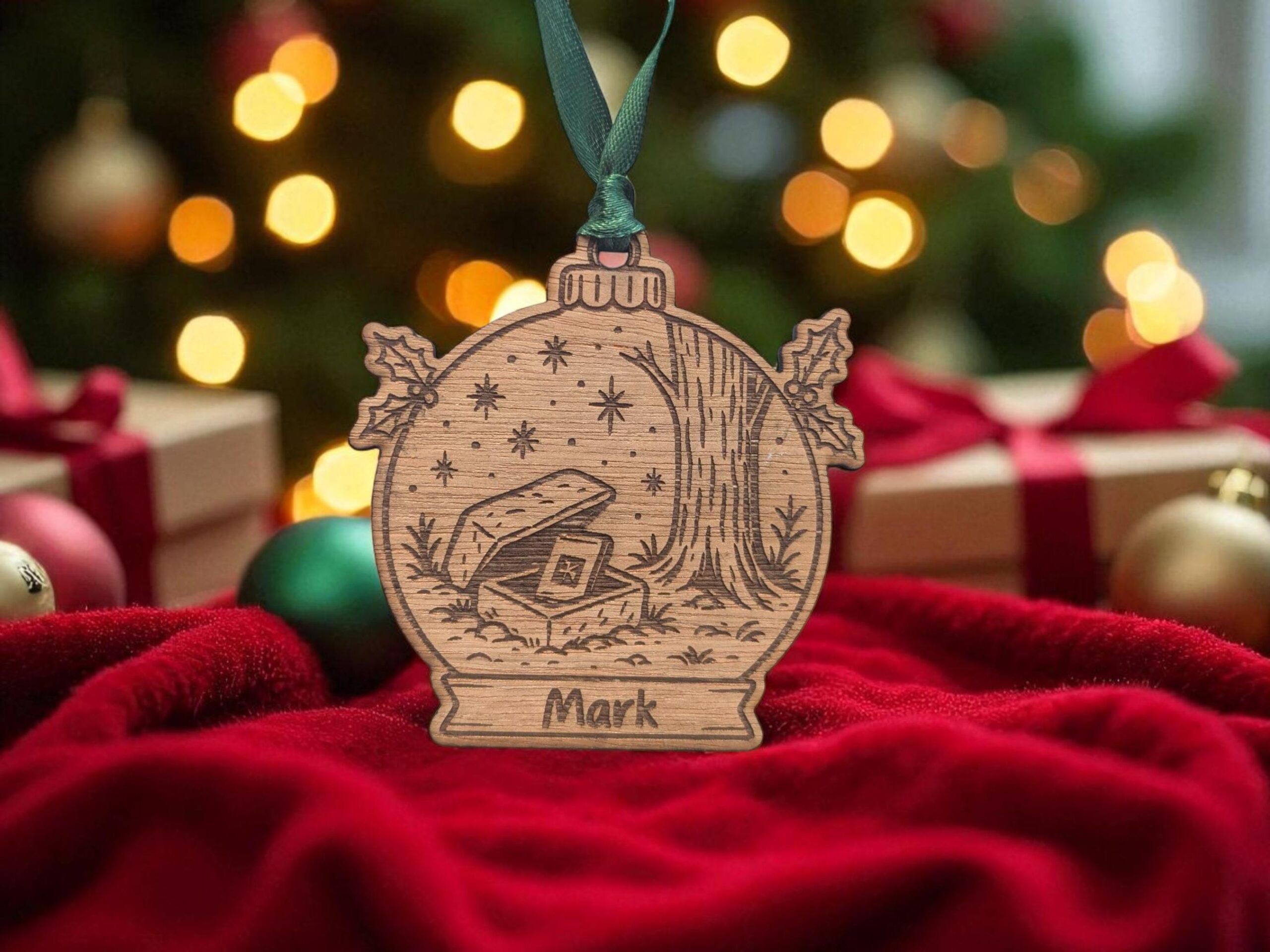 • Ready to hang – Choose from a vegan-leather strap or festive red or green ribbon to match your Christmas décor.