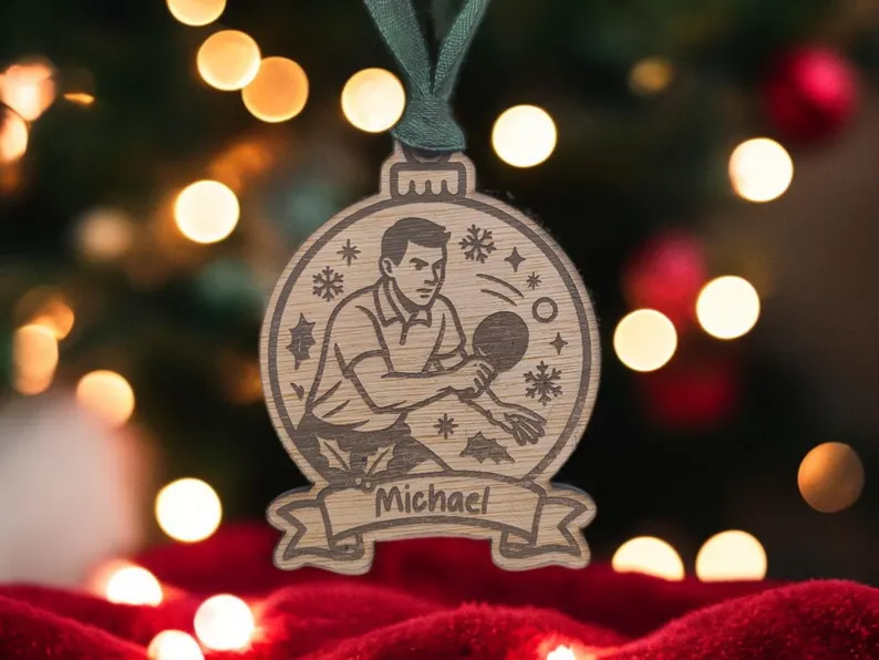 Celebrate skill, focus and love for the game with this Personalised Male Table Tennis Christmas Bauble. Laser-engraved on natural wood veneer, it features a male ping pong player illustration and your chosen name — creating a meaningful festive keepsake he’ll enjoy bringing out each year.